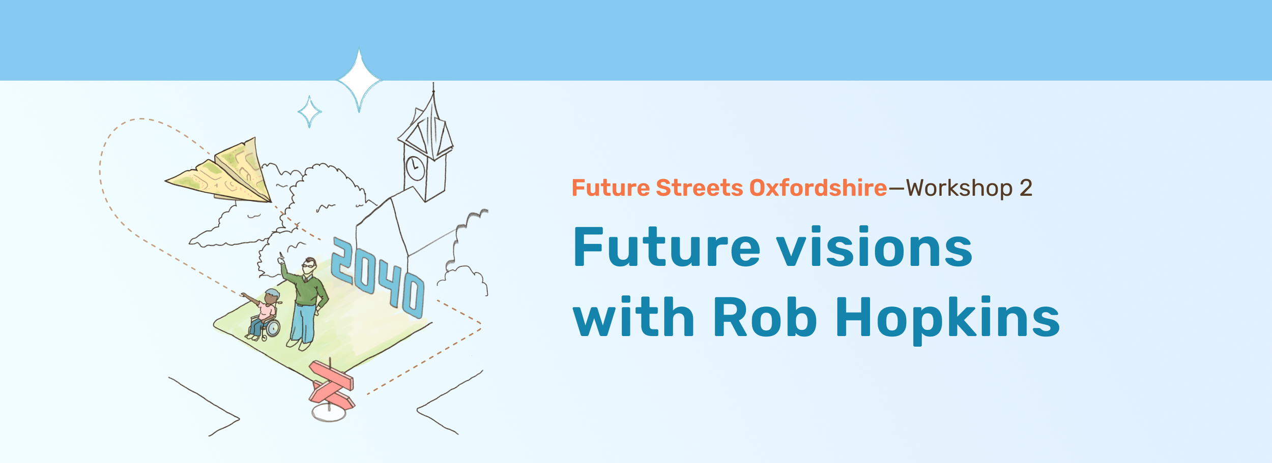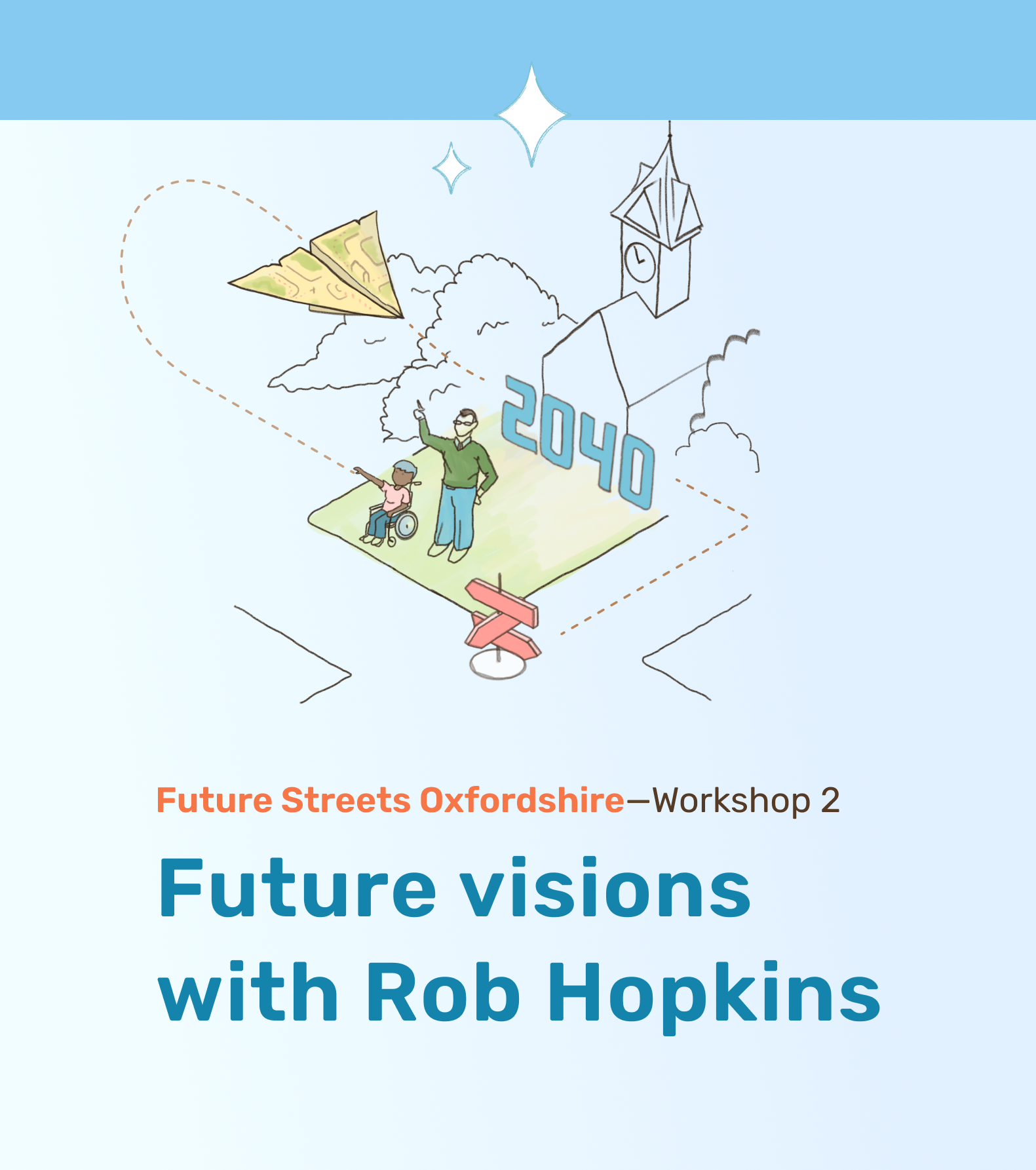 This is Workshop 2 of Future Streets Oxfordshire. Building on what participants shared in Workshop 1, the next step is to turn to the future through collective imagination, live illustration, and a room full of Oxfordshire voices.